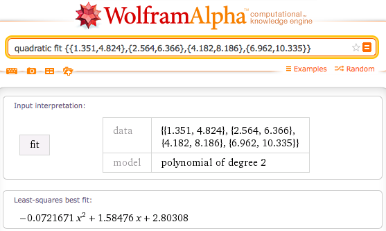 You can also use Wolfram|Alpha to do the regression, or a TI. Unfortunately Desmos doesn't have regression yet. W|A is surprisingly finicky about the phrasing you use. For example it prefers "fit" over "regression."