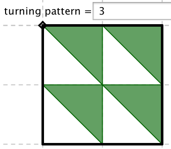 The third option was the real goal for me. I wanted to make a way to put in a rule, then have the Truchet pattern show the rule. Essentially, you want a sequence with values 0 to 3 to show which position the Truchet triangle is in.
